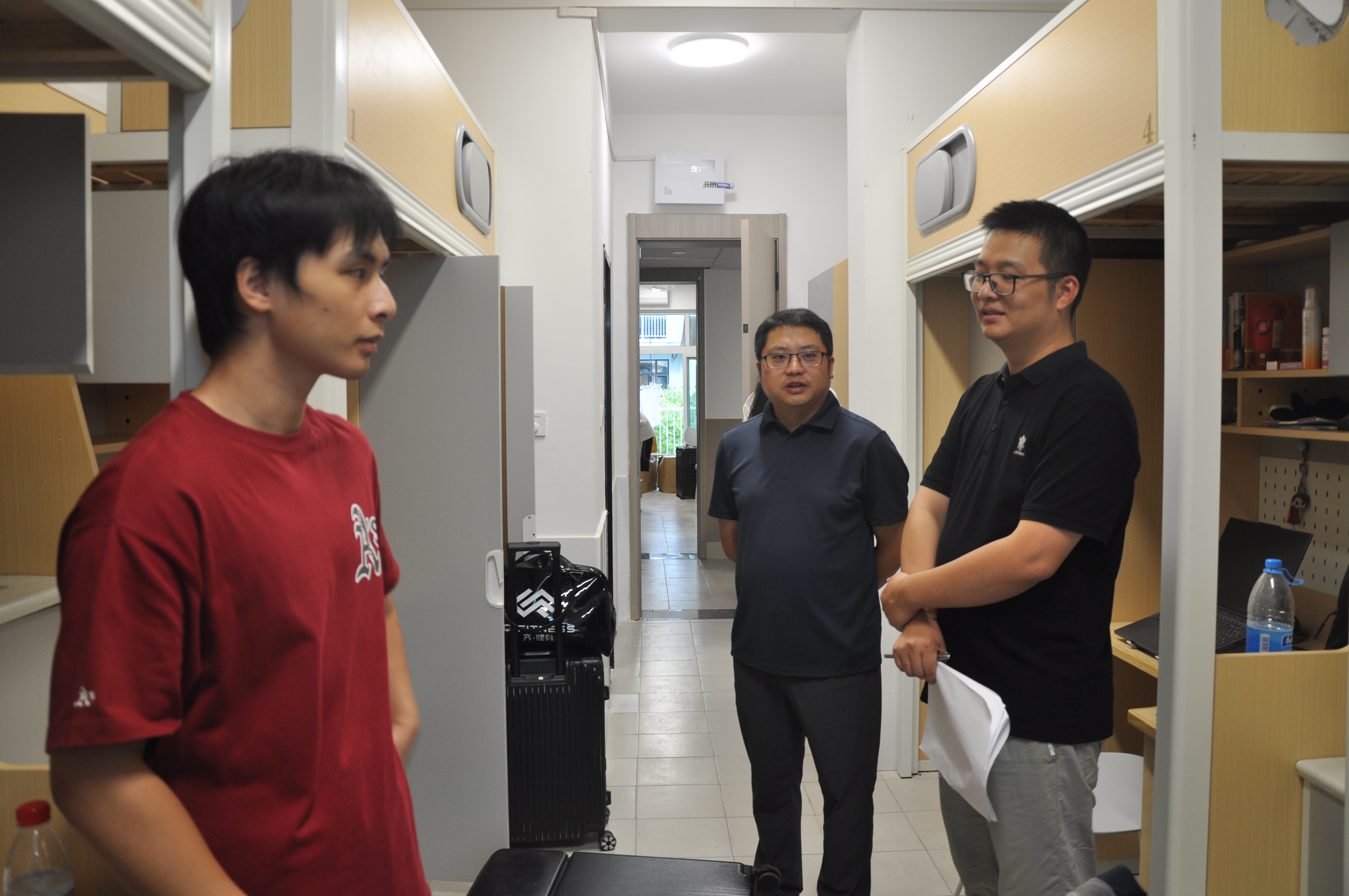 报到日当天,副经理(主持工作)毛宁、党委副书记叶城均、研究生辅导员吴文杰走访全体研究生新生寝室,亲切问候远道而来的新同学,表达了对新同学的殷切期望和诚挚祝福,师生间打开话匣子,从读研规划到入学感悟、从宿舍安全到心理健康,师长们的贴心叮嘱让研新们在入住宿舍之初就感受到了威廉希尔体育艺术大家庭的温暖。学院将持续关注研究生成长需求,通过学术指导、生活关怀等多维度支持,助力新生快速融入新环境。此外,我司学工团队还走访了本科老生寝室,关注员工寝室搬迁调整和开学准备情况。
