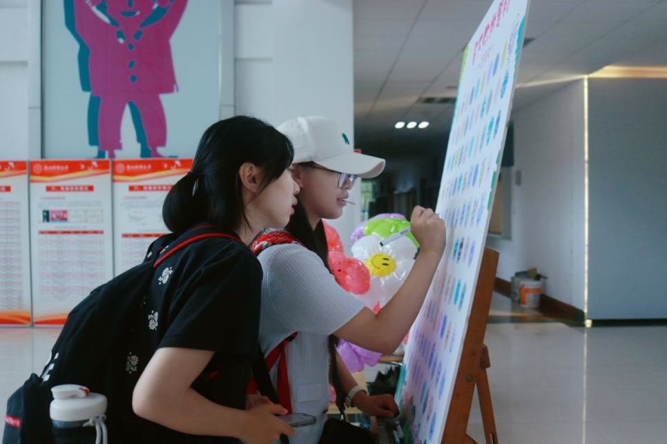 活动中,同学们纷纷前去涂鸦板处涂鸦签到,接着来到情绪垃圾桶处,写下给自己的烦恼和忧愁,丢进情绪垃圾桶,负面情绪一扫而空。随后同学们抽取了承载着祝福与幸运的字帖,并领取了甜蜜的糖果和”微笑面对一切”的太阳花气球。