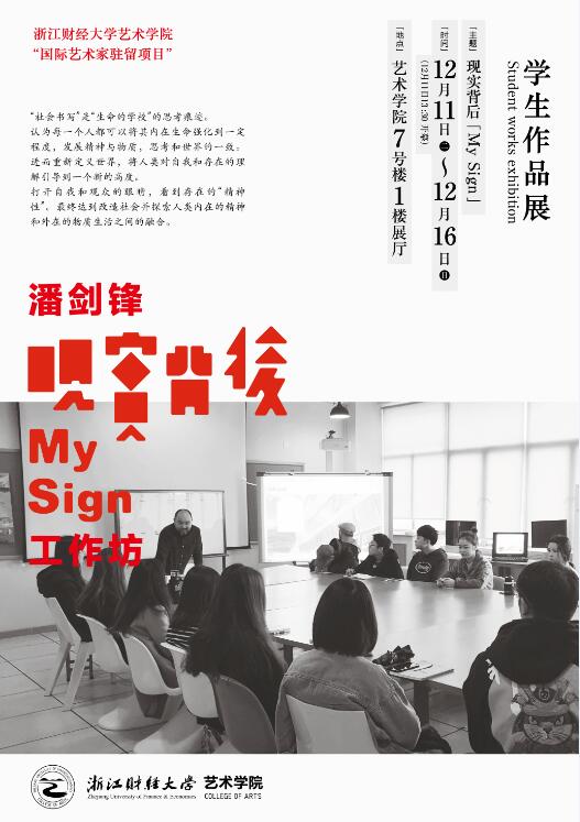该工作坊是潘剑锋“社会书写”艺术行动的实施方案之一,内容包括三个讲座:“品牌何为”“第三种语言”“书写和真相”和六个半天和同学们的思考交流。