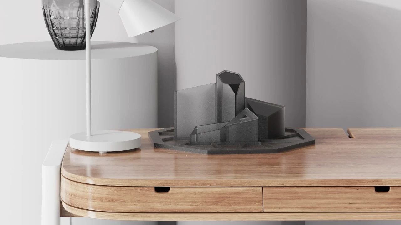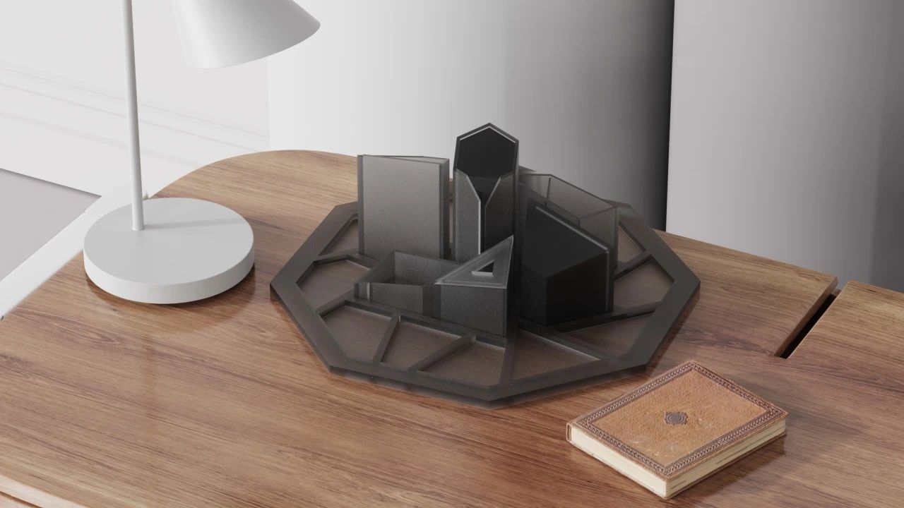 设计理念:“万象”指传统窗棂纹样背后的中华文化博大精深,“初新”指现代建筑的诞生,既传承古典美,也发展现代美,包罗万象、多姿多彩。整体底盘采用传统古典窗棂纹样,上半部分以苏州国际金融中心及周边建筑群为原型,底部以中国传统窗棂为原型,由金属和玻璃组成,呈磨砂透明玻璃效果,有从中生长出现代建筑之意,是古代与现代的碰撞。