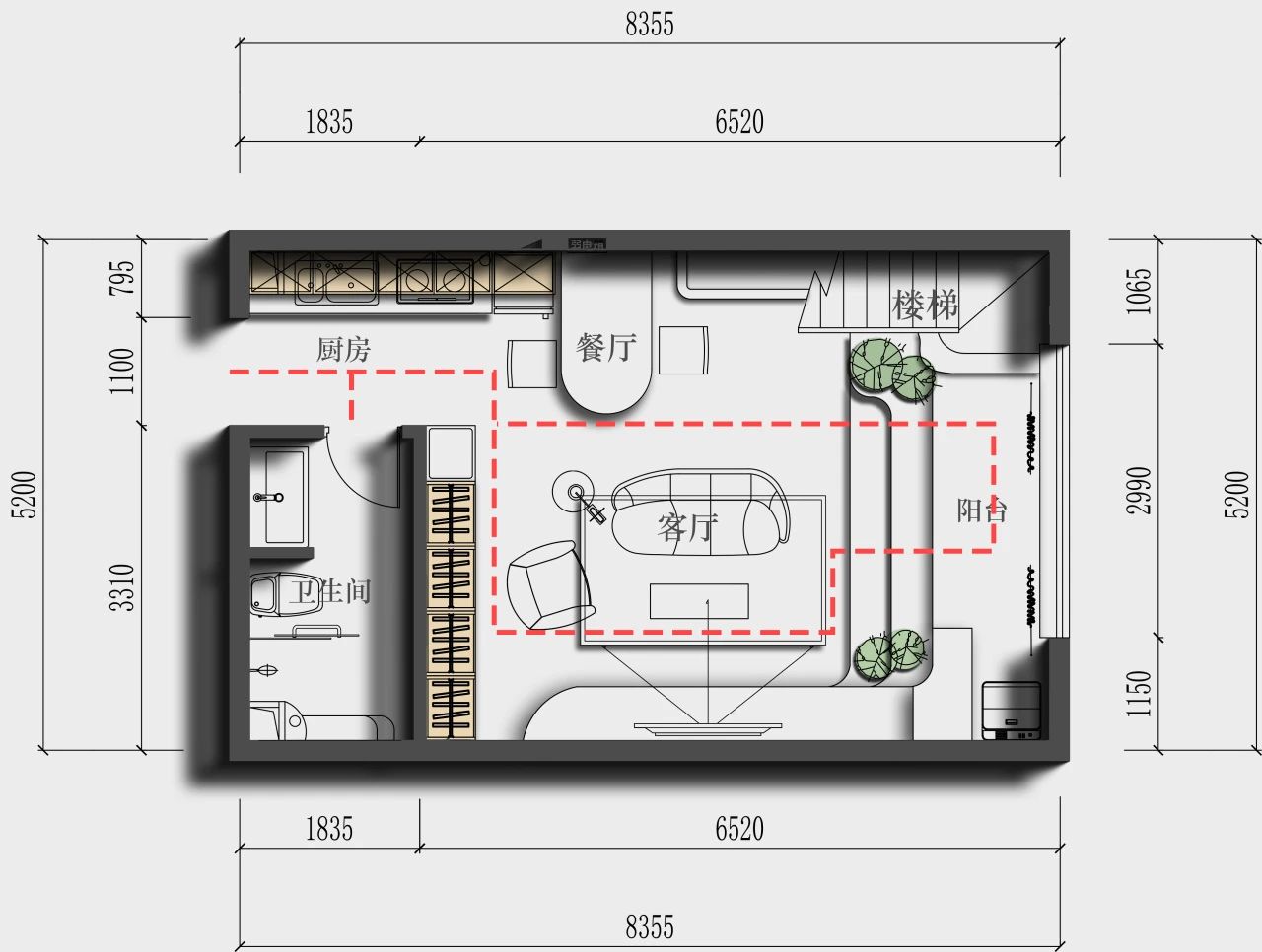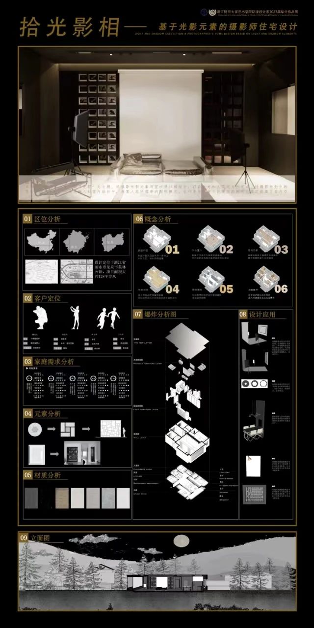 设计理念:本案以摄影中较为重要的“光影”元素为出发点进行设计,通过光线、空间利用和家具搭配等方面综合考虑,打造出一个舒适、美观、实用的居住环境,通过多种不同的手法表达主体物,创造一种新的空间含义,并且将其具体化为点、线、面的建筑语言,使室内空间充满着生动的视觉画面,创造拥有镜头感的室内空间,从而为室内设计增添更多的体验和活力。
