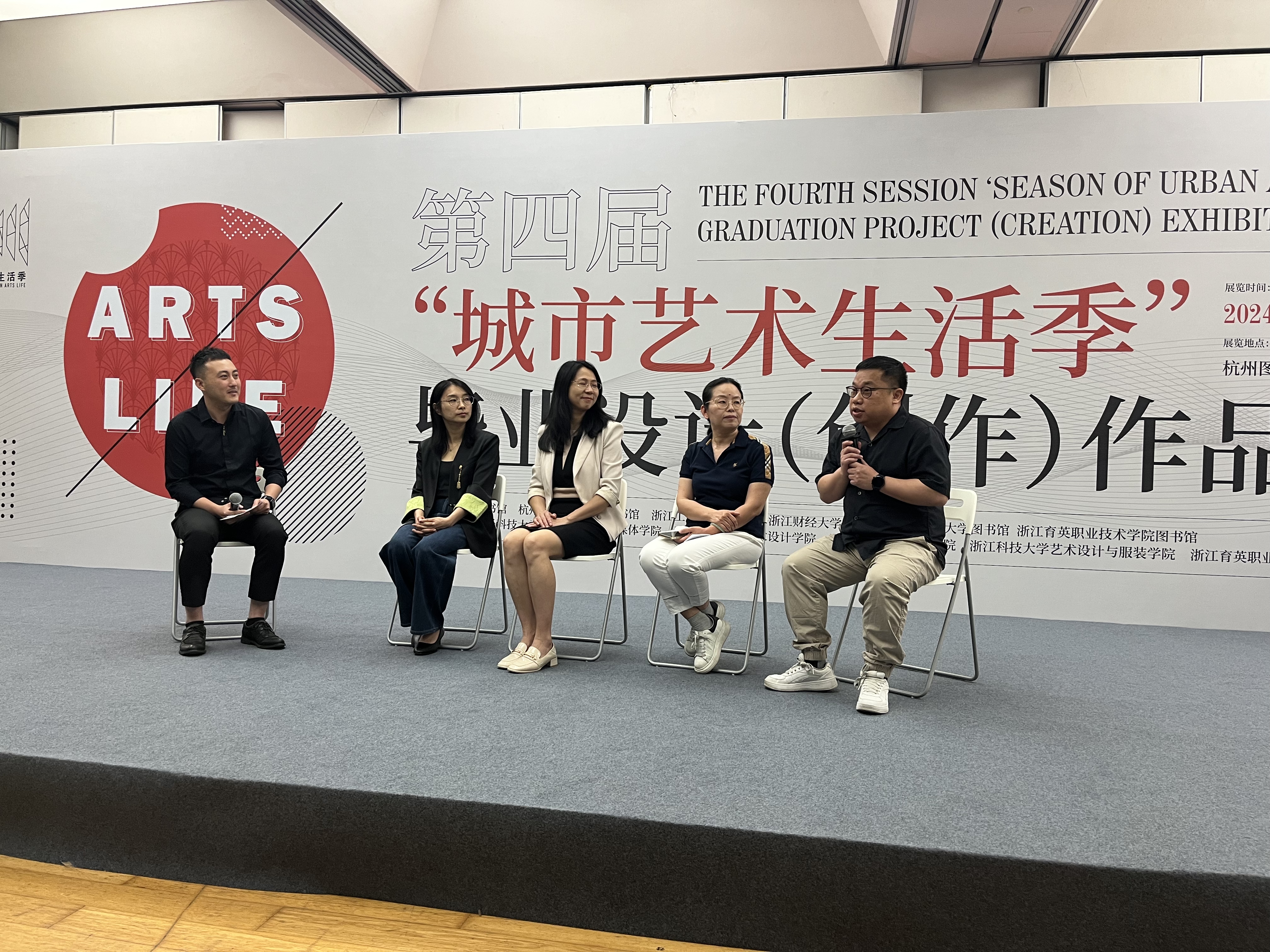 5月13日,由杭州图书馆、杭州电子科技大学、浙江工商大学、威廉希尔体育、浙江科技大学、浙江育英职业技术学院等多所高校图书馆和艺术设计学院共同主办的第四届“城市艺术生活季”毕业设计(创作)作品展在杭州图书馆展览艺术中心开幕,我院作为承办方之一,偕部分2024届优秀毕业作品参展。