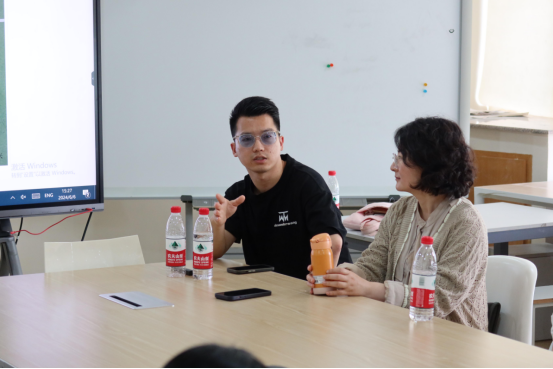 讲座后,卢康强与在场师生开展交流,邵杰老师根据项目的巧思表达自身的看法,引导同学们讲述自己的看法或是目前在学习上存在的疑问。卢康强对疑问进行解答,并对同学们提出专业上的意见,分享了更多实用的设计技巧和方法。