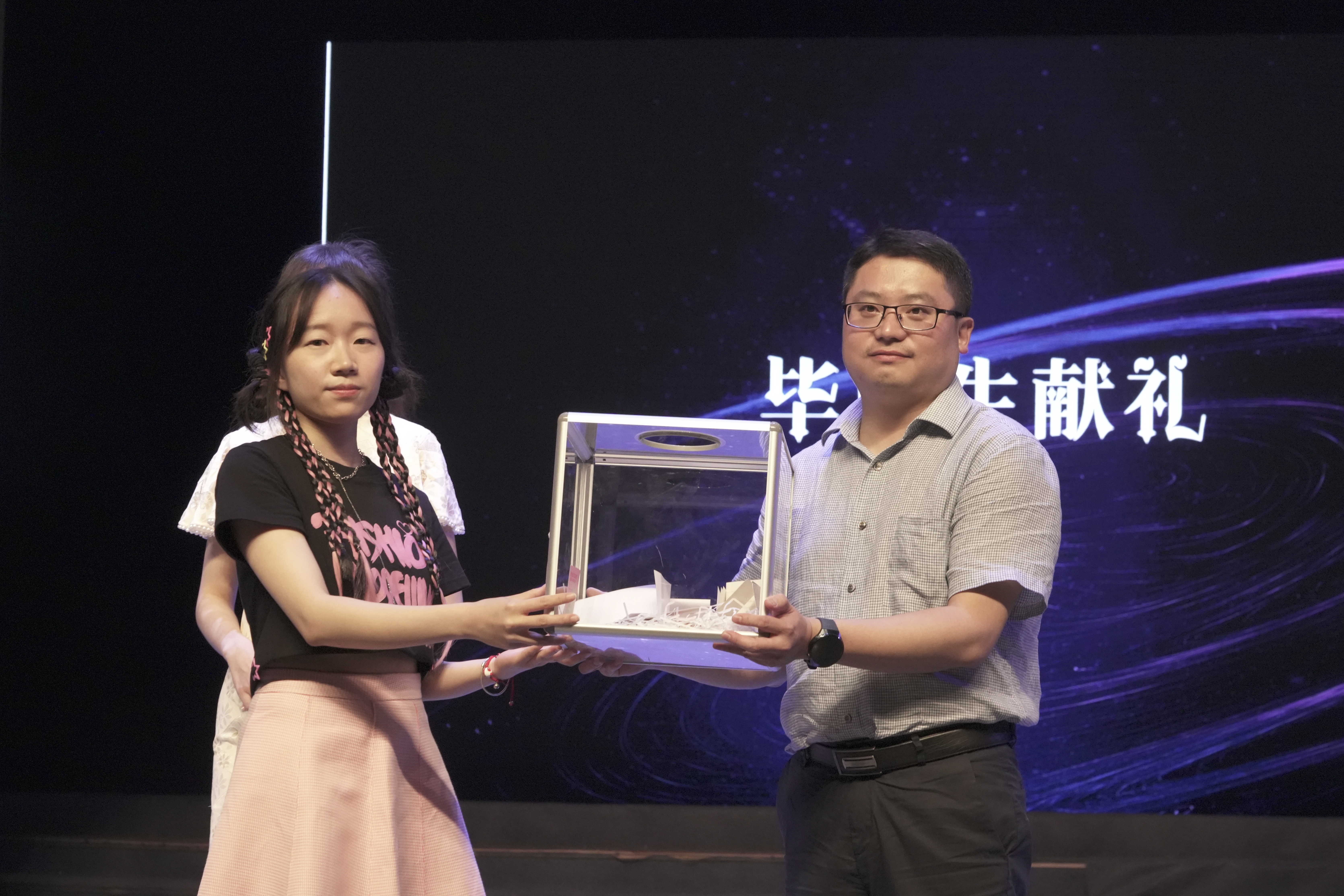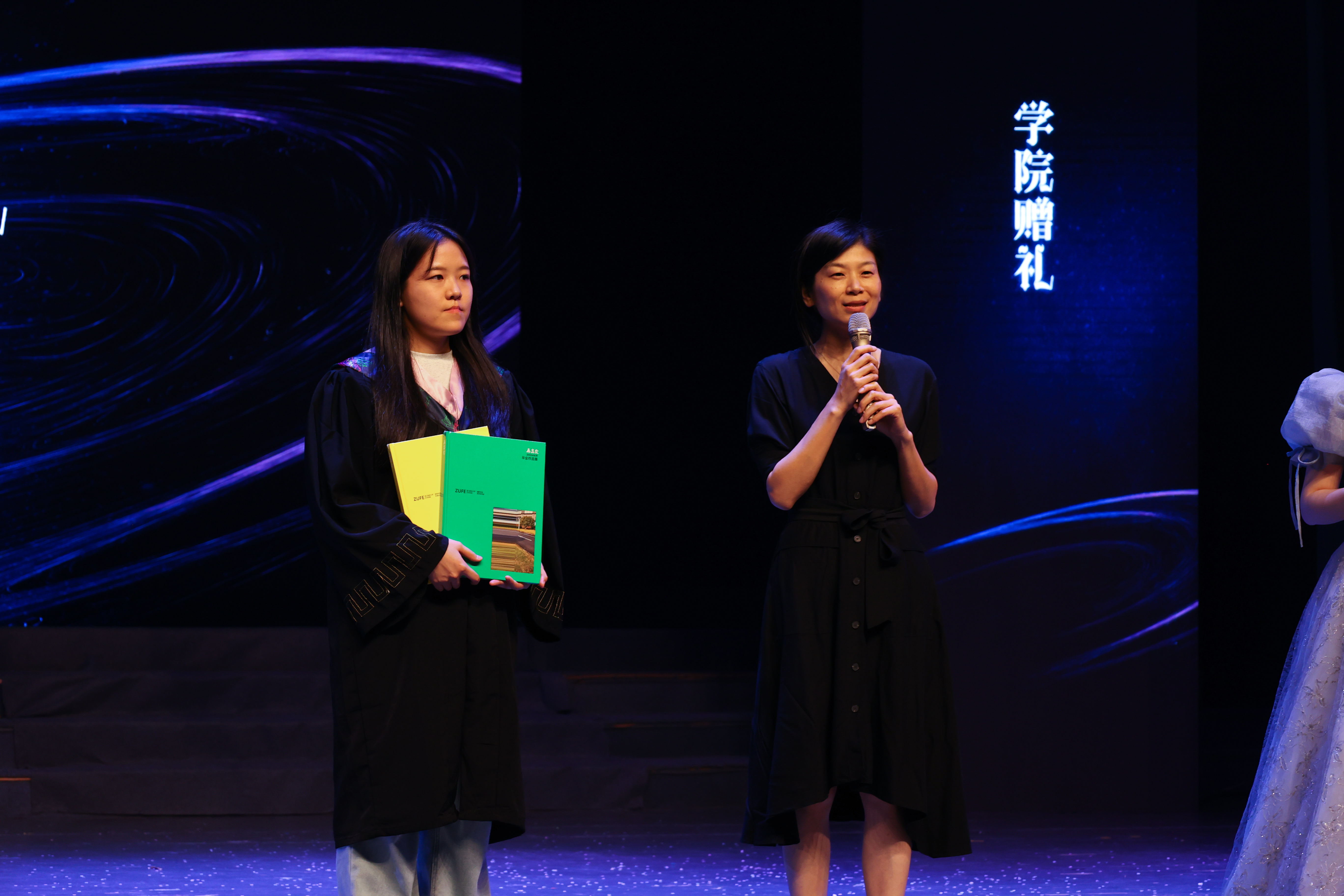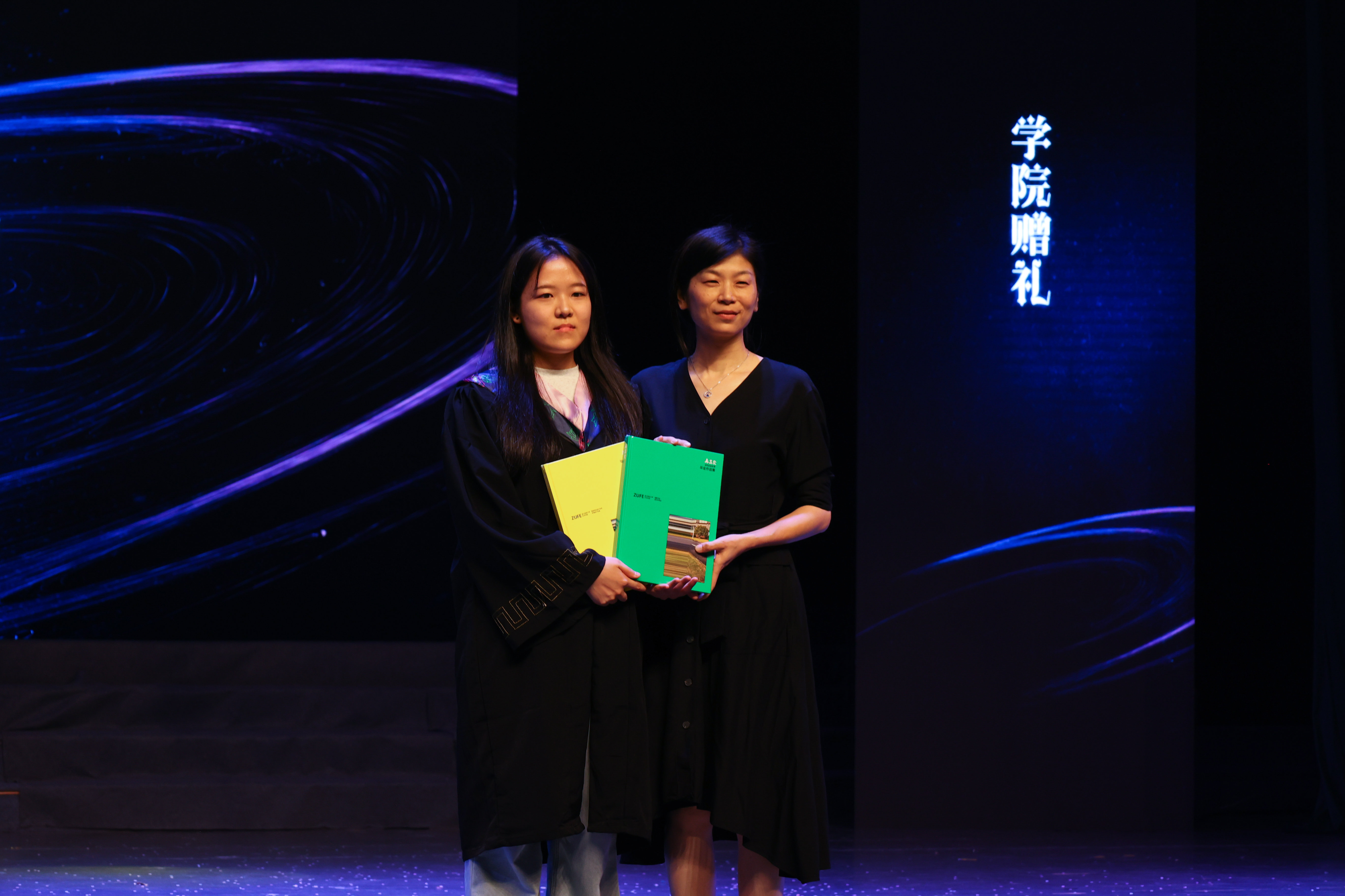 毛宁代表学院向2024届毕业生赠送员工优秀作品集,希望毕业生们将四年的所学成果与导师的珍贵情谊及青春年华奋斗历程一并收藏,并祝福全体毕业生迈向更大更广阔的舞台。