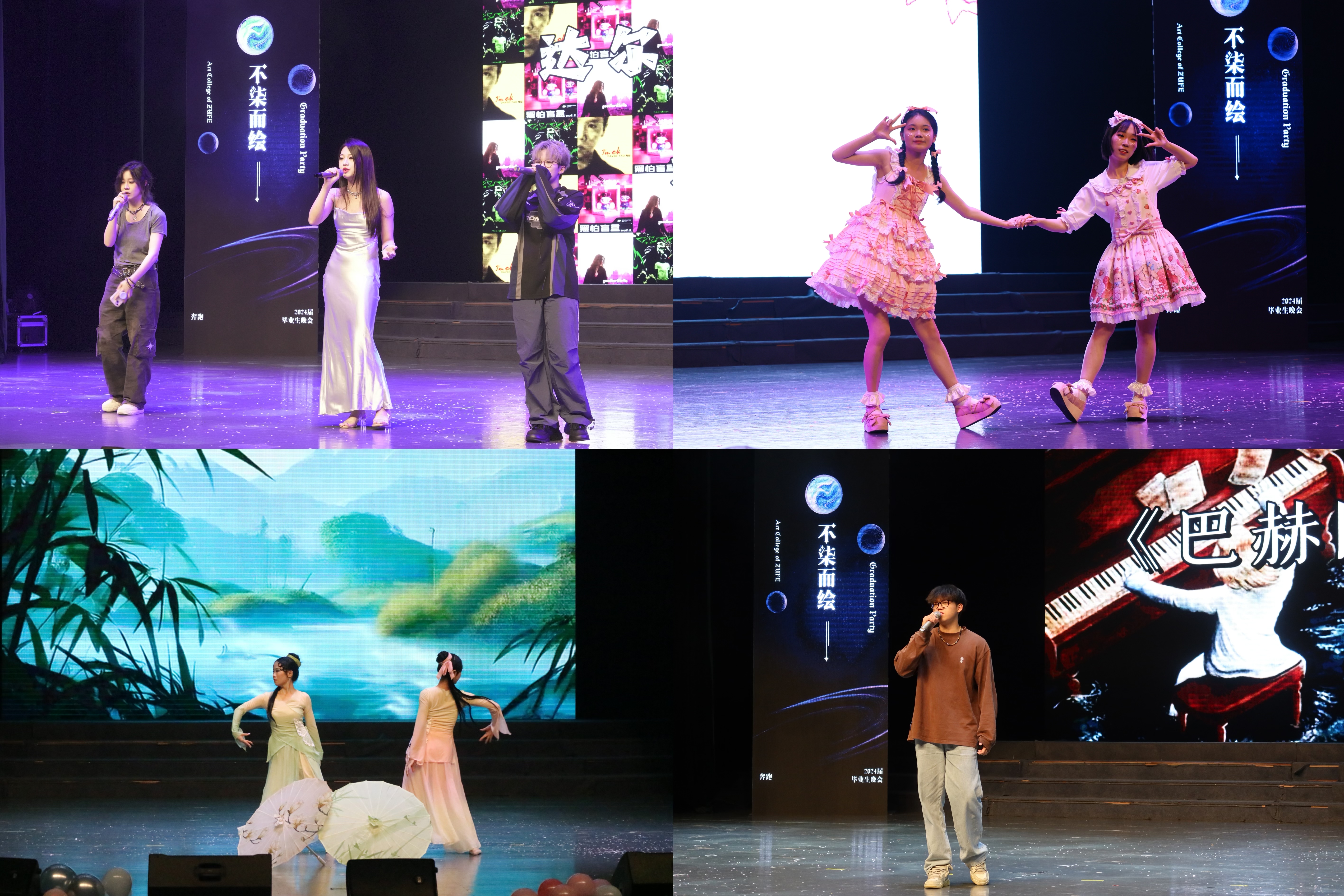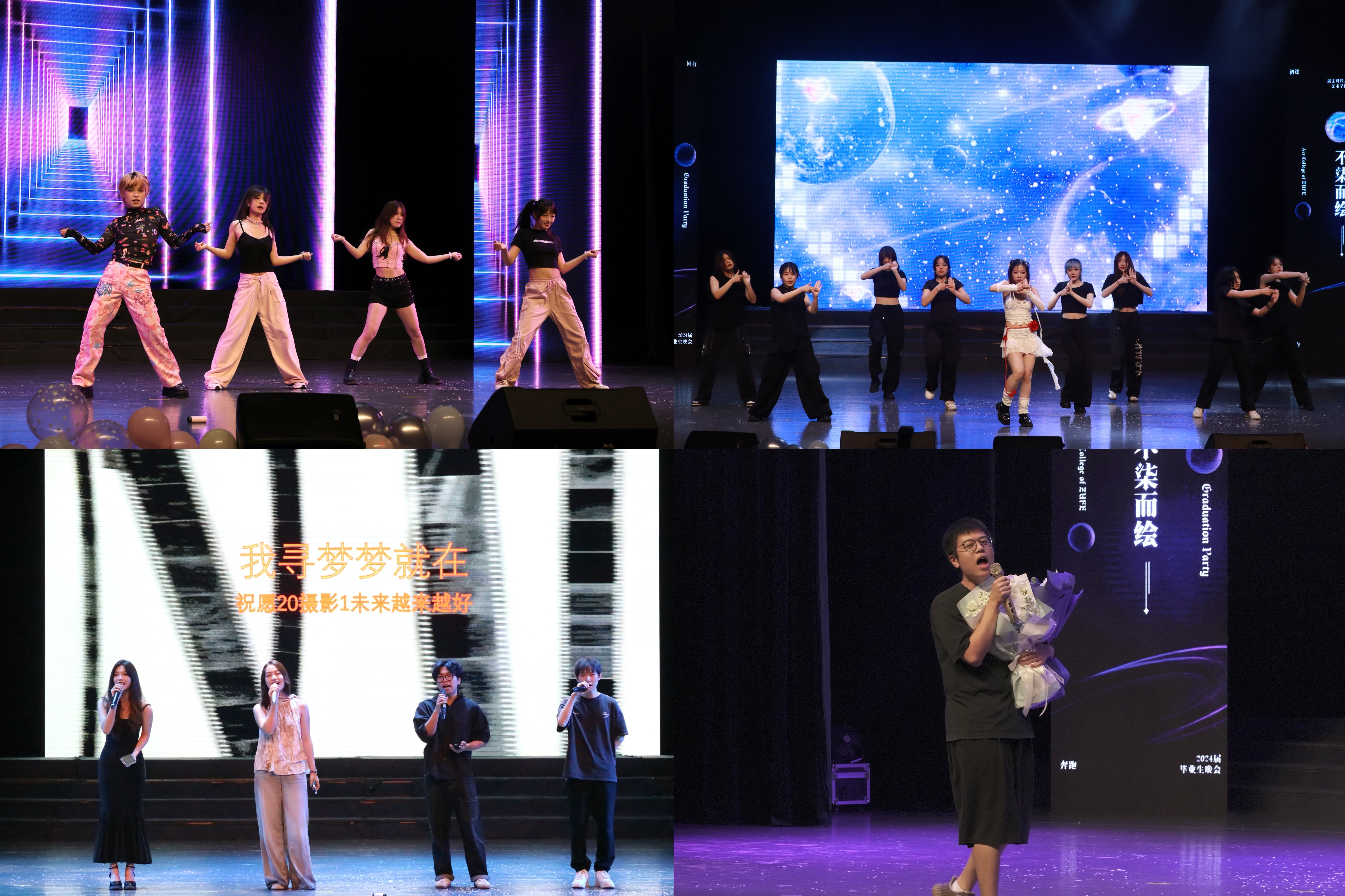 川剧变脸、舞狮、歌舞……精彩的节目讲述了同学们在柒号楼初逢,成为艺术一“家”,矢志奔跑逐梦的精彩蝶变。舞台上,毕业生们光芒闪耀,镜头里绽放的笑颜,是造炬成阳的青春芳华。回首是满地繁花,抬头是璀璨星河,节目中的瞬间将时光定格于美好,相约共同奔赴下一场诗和远方。