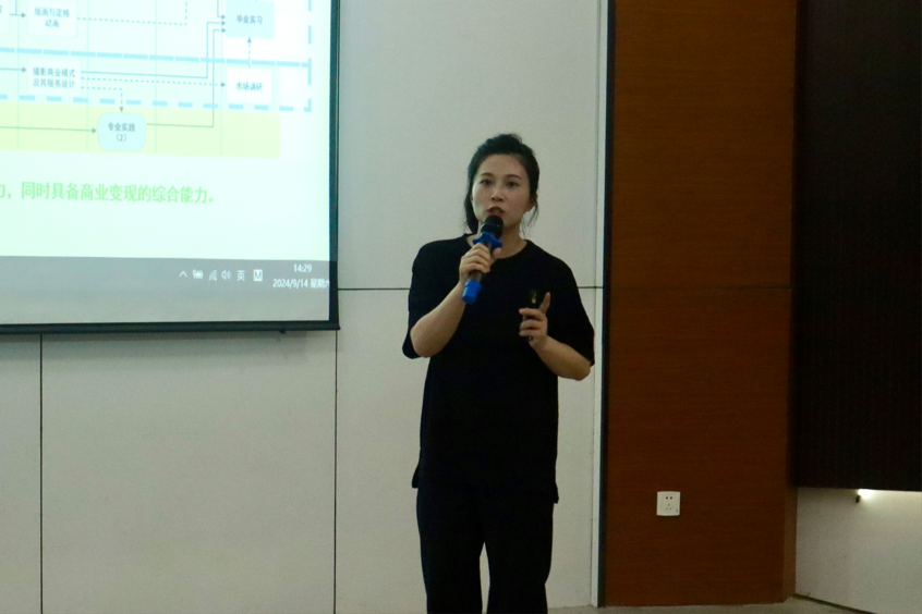 随后,视觉传达设计系主任于田、环境设计系主任王羽、摄影系主任陈燕、美术学系主任叶盛、书法系主任徐文平分别详细介绍了各专业的发展特色、团队情况、培养方案等,让新生们在开学之初就对专业有了更为直观的了解,为今后的学习打下坚实基础。