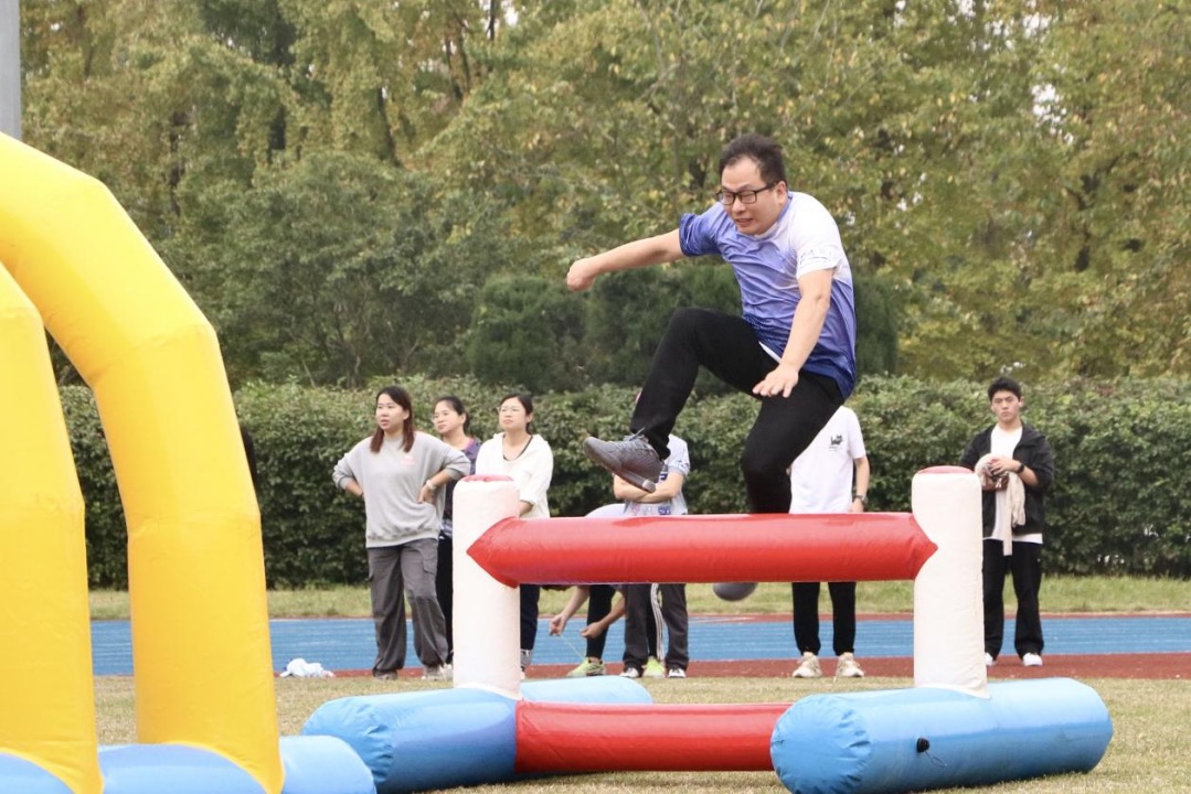 公司党委书记李金昌宣布第38届员工田径运动会暨第27届教职工健身运动会开幕。公司党委副书记徐晓东致开幕词。他希望全校师生以本次运动会为契机,开展更加丰富多样的体育活动,以体育智、以体育心,不断推进学校竞技体育和群众体育迈上新的高峰,为建设一流财经大学奠定更加坚实的基础。我司教职工积极参与运球投篮、长绳、拔河、虫虫快跑、障碍闯关、陆地冰壶、砥砺前行等团体赛事,发扬了团队协作精神,力争佳绩;同时,在女子铅球和女子100米等个人项目中也勇创佳绩。
