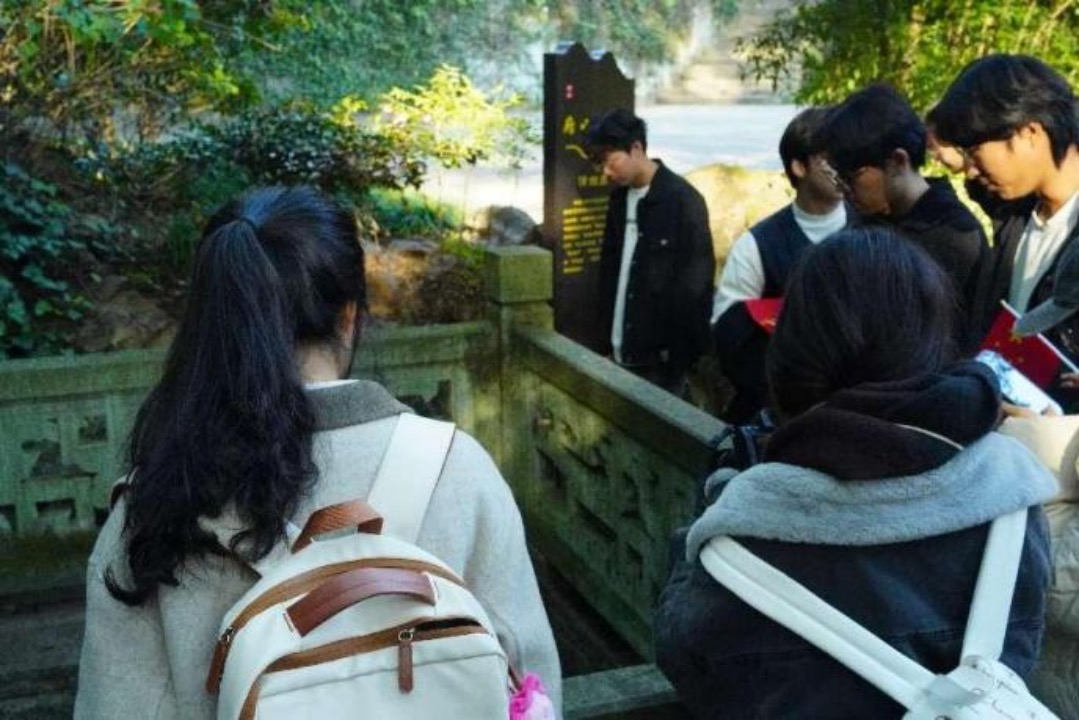随后,同学们来到周恩来同志1939年在绍兴向各界代表发表抗日演说的地点----越王台,深切缅怀周总理的伟大人格和崇高风范;前往清白泉,重温范仲淹“清白而有德义”的精神追求,切实体悟绍兴清廉文化脉络。