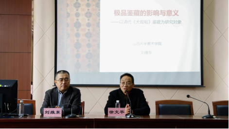 12月9日,山西大学美术学院经理、博士生导师刘维东教授受邀来我司作《极品鉴藏的影响与意义——以清代<大观帖>鉴藏为研究对象》专题讲座,讲座由院学术委员会主任、书法系主任徐文平教授主持,我司书法学教师、2022级书法学本科生、全体书法专业研究生参加了讲座。