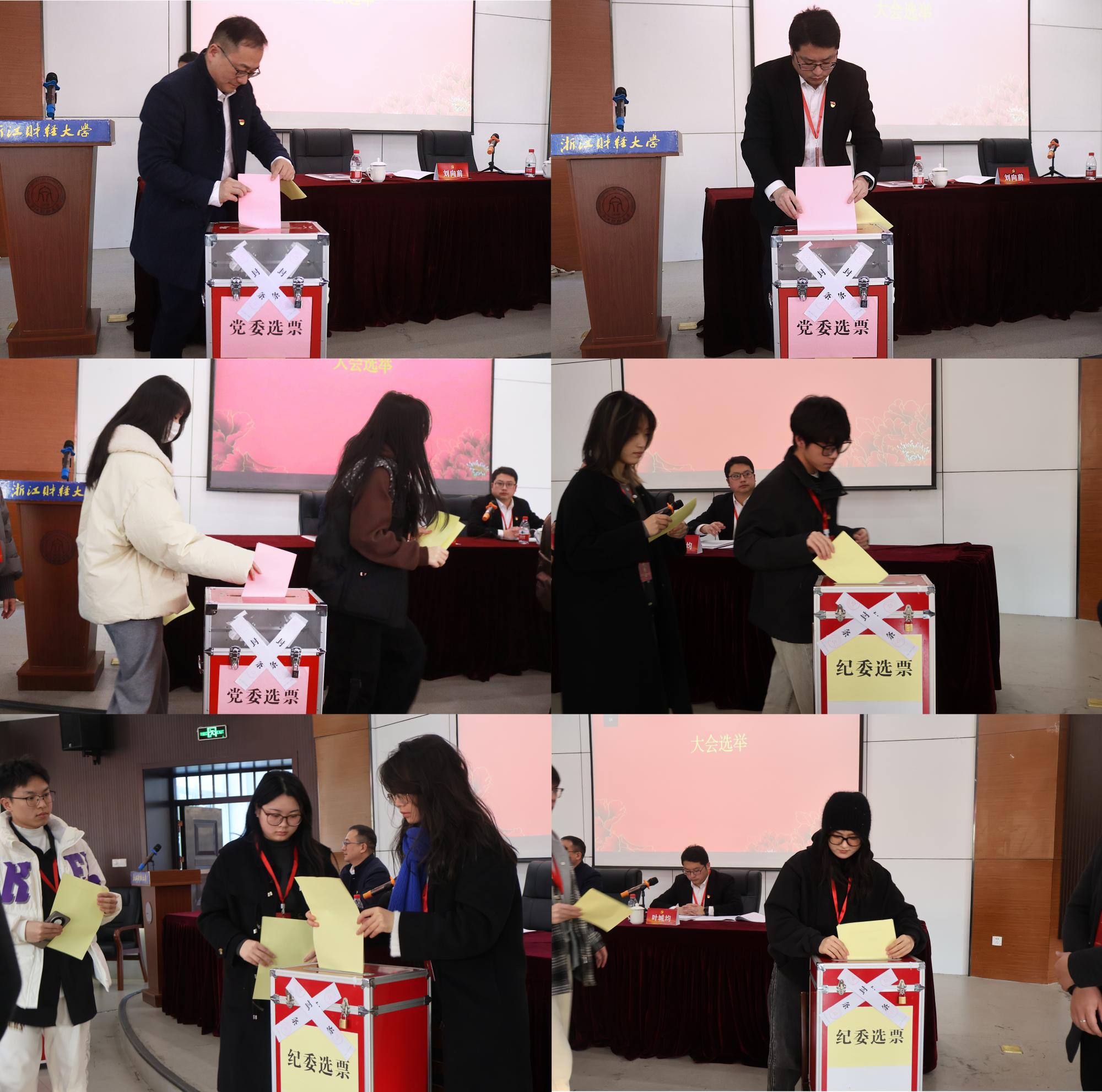 大会期间,全体参会人员通过听取报告、书面审议、分组讨论等环节,审议通过了党委工作报告、纪委工作报告、党费收缴使用情况报告、选举办法及监计票人名单。按照选举办法和规定程序,全体到会正式党员采用无记名投票和差额选举方式,选举产生了威廉希尔新一届党委会,于田、元国霞、叶城均、叶盛、刘向前、邵杰、熊亦冉(按姓氏笔画为序)当选新一届党委委员,选举产生了威廉希尔新一届纪委会,邓斯怡、叶城均、张晓晨、张滨、高媛晴(按姓氏笔画为序)当选新一届纪委委员。