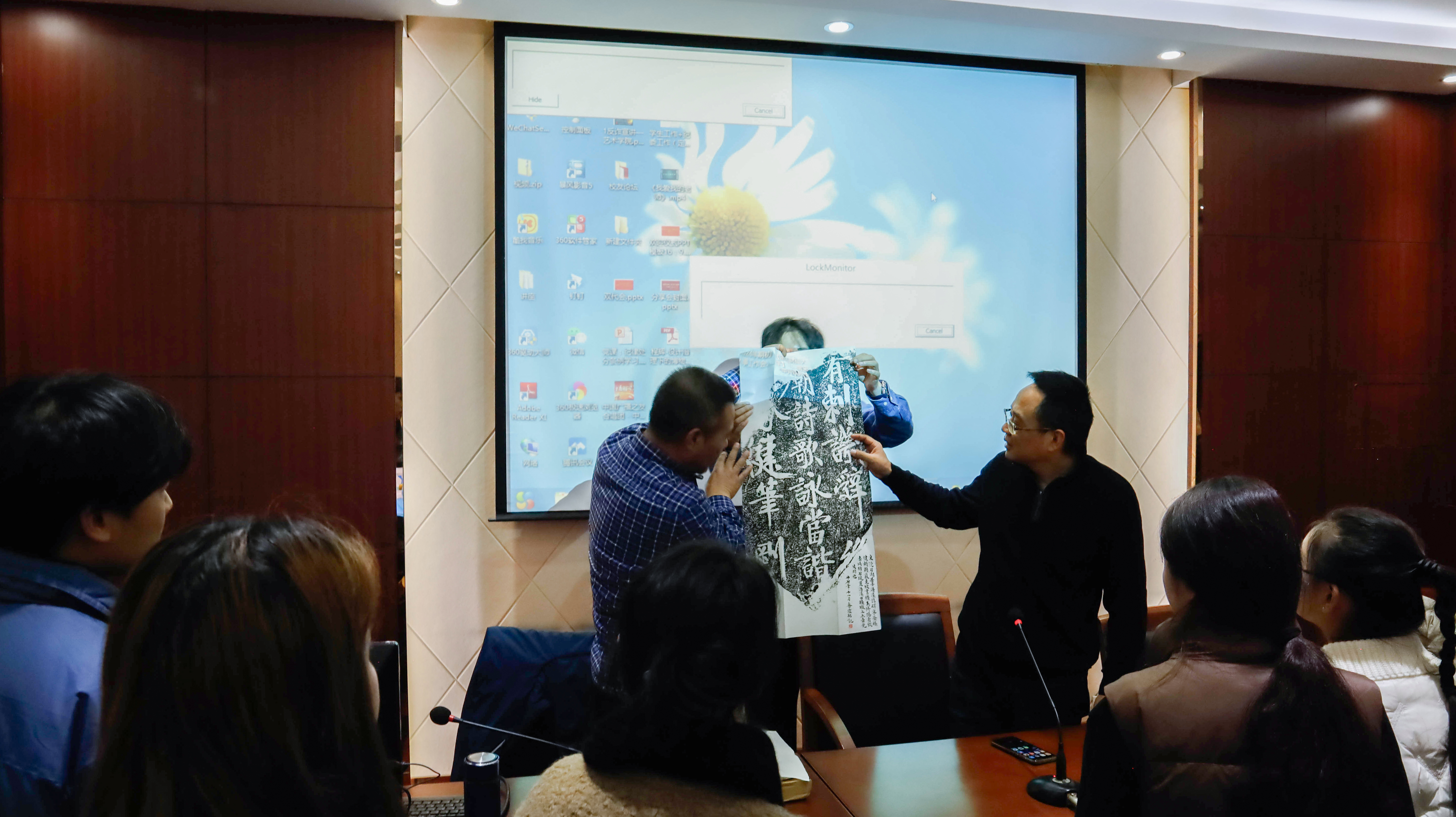 讲座尾声,方爱龙教授专门取出自己珍藏的南宋名家的代表性书法拓片给在场的师生一起观赏,通过拓片赏析,都更进一步领略南宋文人的书法风采,感受到“中兴四大家”的精神气质。