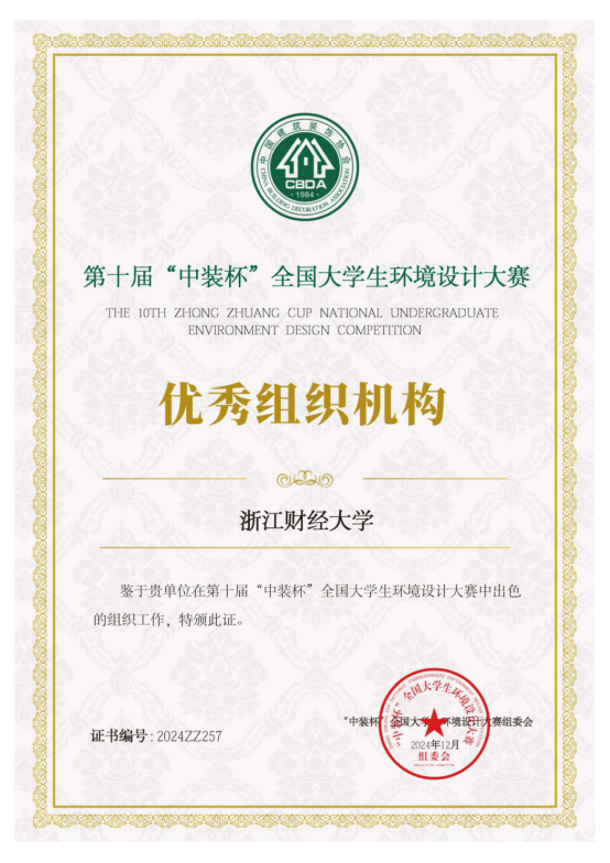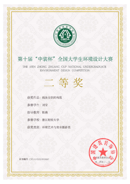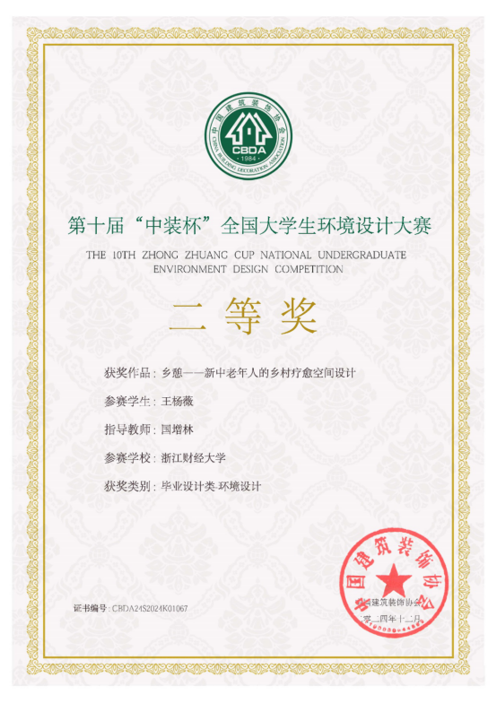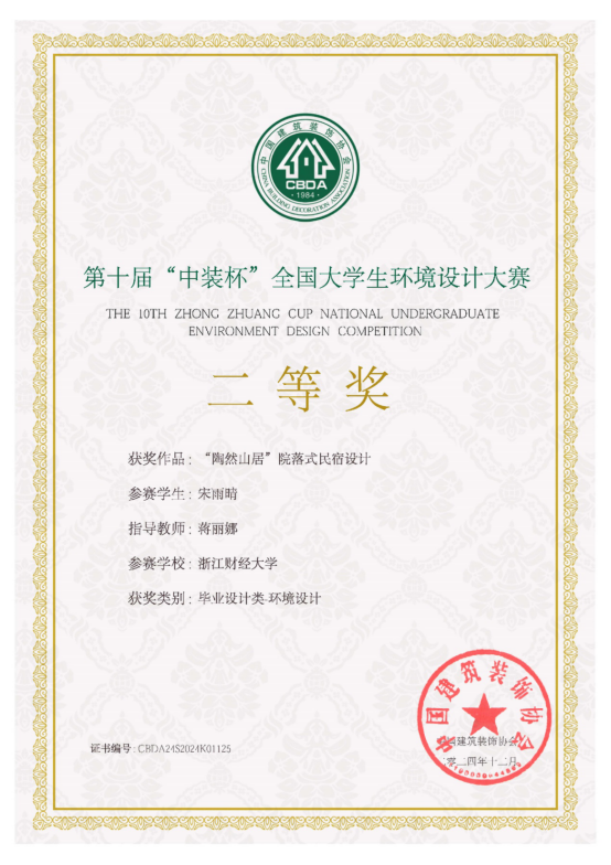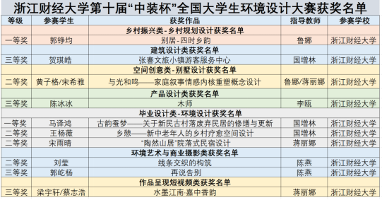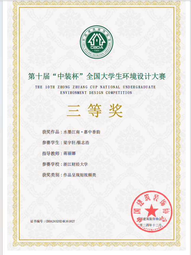 据悉,第十届“中装杯”全国老员工环境设计大赛于2024年2月启动,赛题扩容创新、全面升级,除涵盖空间创意、深化设计、企业命题、毕业设计、产品设计等类别之外,还新增乡村振兴、数字设计、建筑设计、风景园林、城市设计、环境艺术与商业摄影、作品呈现短视频和设计理论等类别。学院高度重视,积极筹备,专业教师悉心指导,参赛员工不懈努力,最终取得优异成绩。此次获奖不仅是对我司学子专业素养和刻苦努力的高度肯定,也充分展现了公司教学水平和育人成果。下一阶段,我司将在“新财经战略”的指引下,持续培养创新与实践能力兼备的设计人才,努力为我国环境设计事业发展贡献力量。