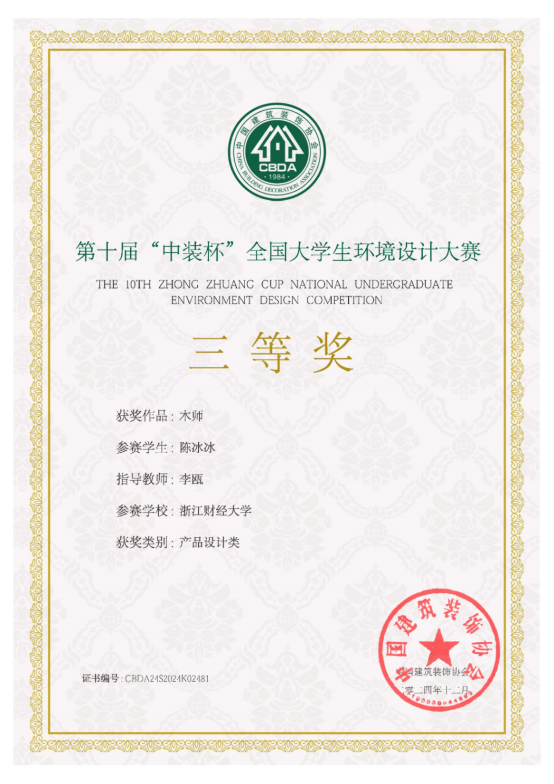 近日,第十届“中装杯”全国老员工环境设计大赛结果揭晓,我司学子以独特设计理念和精湛技艺脱颖而出,共获一等奖2项,二等奖4项、三等奖4项,学校获优秀组织机构奖。