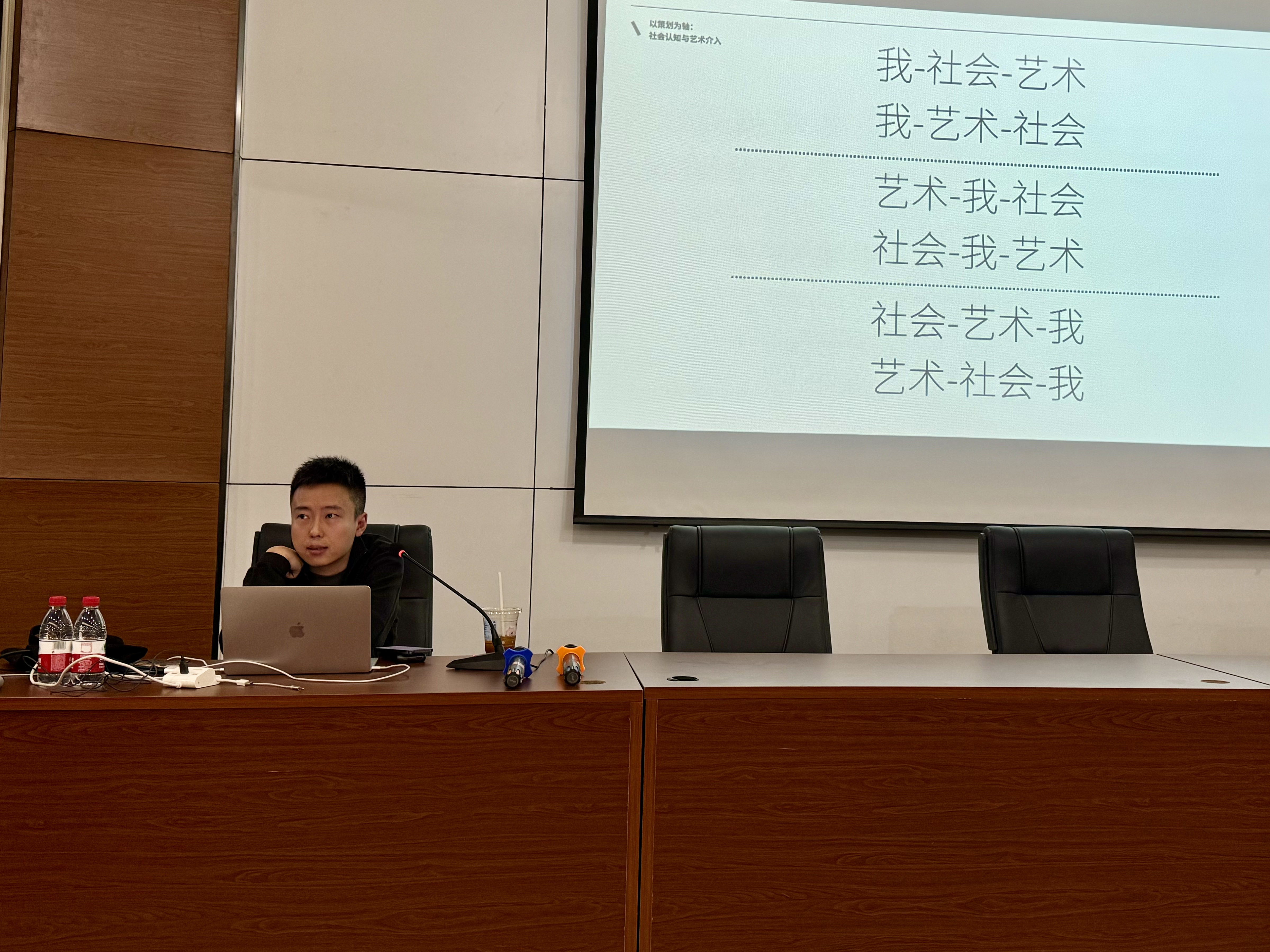 沈乾石老师从个人经历入手,详细分享了策展的思想路径,并结合实例展开分析。在介绍具体项目时,他鼓励同学们关注艺术的社会性与当下性,拓展自身的思考维度,以及作为一个策展人对展览和公众的责任。