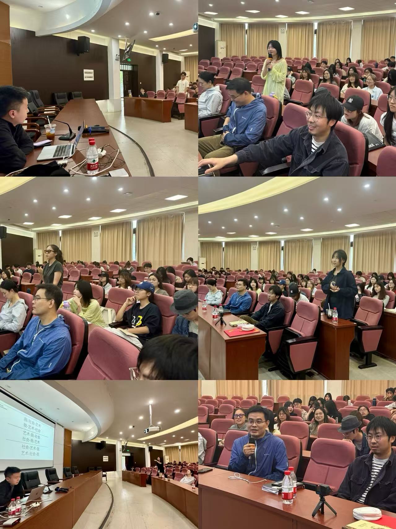 讲座期间,现场同学热情提问,问题涉及学习方法、职业规划、策展资源链接、社会实践等。美术学系吴巩鹏、史劼、杨一隽三位老师也先后加入对谈和讨论。