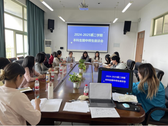 4月29日下午,威廉希尔召开了2024—2025学年第二学期本科生期中师生座谈会。学术副经理元国霞,学院督导张滨、王海霞,各专业系主任叶盛、王羽,教师代表张晓晨等老师,与2021级至2024级本科生员工代表进行了面对面的深入交流。会议由元国霞主持。
