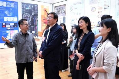 展览现场,我司展区以鲜明的主题性和实践性吸引众多观众驻足,师生代表为参观者详细讲解作品理念,从具体案例的艺术理念到视觉转译,每个细节都彰显跨界创新的巧思。浙江省人民政府参事胡坚在我司展区观展后深受触动,以“艺术给予财经温度”寄语,高度肯定了作品打破学科边界、赋予专业知识人文温度的独特价值。